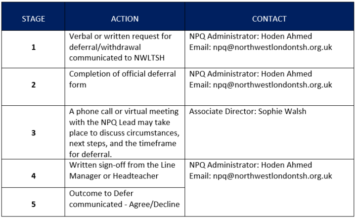 To be eligible for a deferral, participants must have been formally enrolled in the NPQ programme.